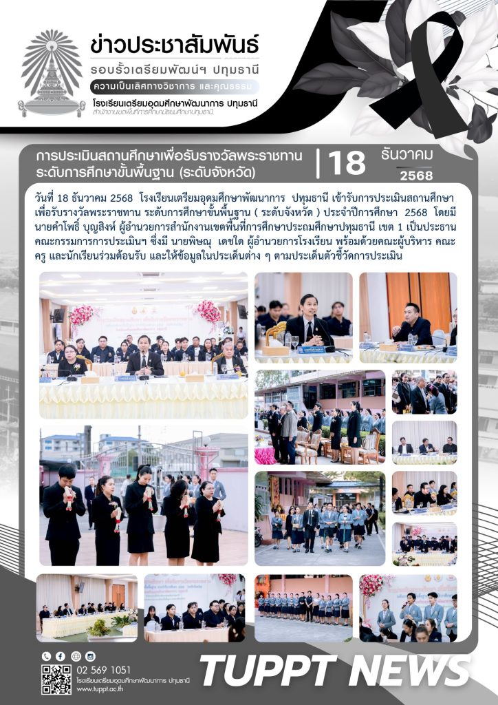 วันที่ 18 ธันวาคม 2568 โรงเรียนเตรียมอุดมศึกษาพัฒนาการ ปทุมธานี เข้ารับการประเมินสถานศึกษาเพื่อรับรางวัลพระราชทาน ระดับการศึกษาขั้นพื้นฐาน (ระดับจังหวัด) ประจำปีการศึกษา 2568