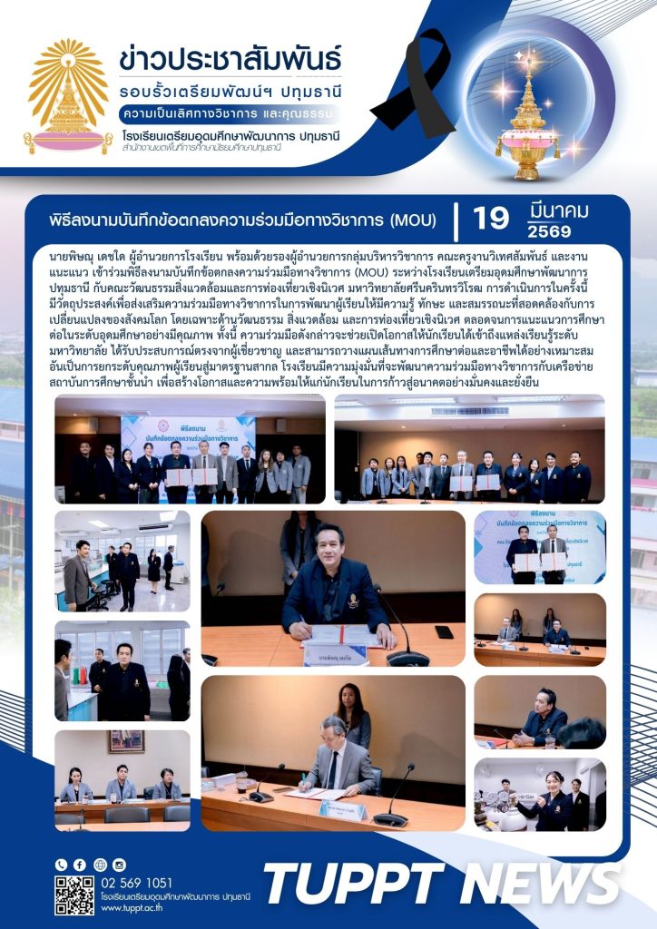 นายพิษณุ เดชใด ผู้อำนวยการโรงเรียน พร้อมด้วยรองผู้อำนวยการกลุ่มบริหารวิชาการ คณะครูงานวิเทศสัมพันธ์ และงานแนะแนว เข้าร่วมพิธีลงนามบันทึกข้อตกลงความร่วมมือทางวิชาการ (MOU) ระหว่างโรงเรียนเตรียมอุดมศึกษาพัฒนาการ ปทุมธานี กับคณะวัฒนธรรมสิ่งแวดล้อมและการท่องเที่ยวเชิงนิเวศ มหาวิทยาลัยศรีนครินทรวิโรฒ การดำเนินการในครั้งนี้มีวัตถุประสงค์เพื่อส่งเสริม